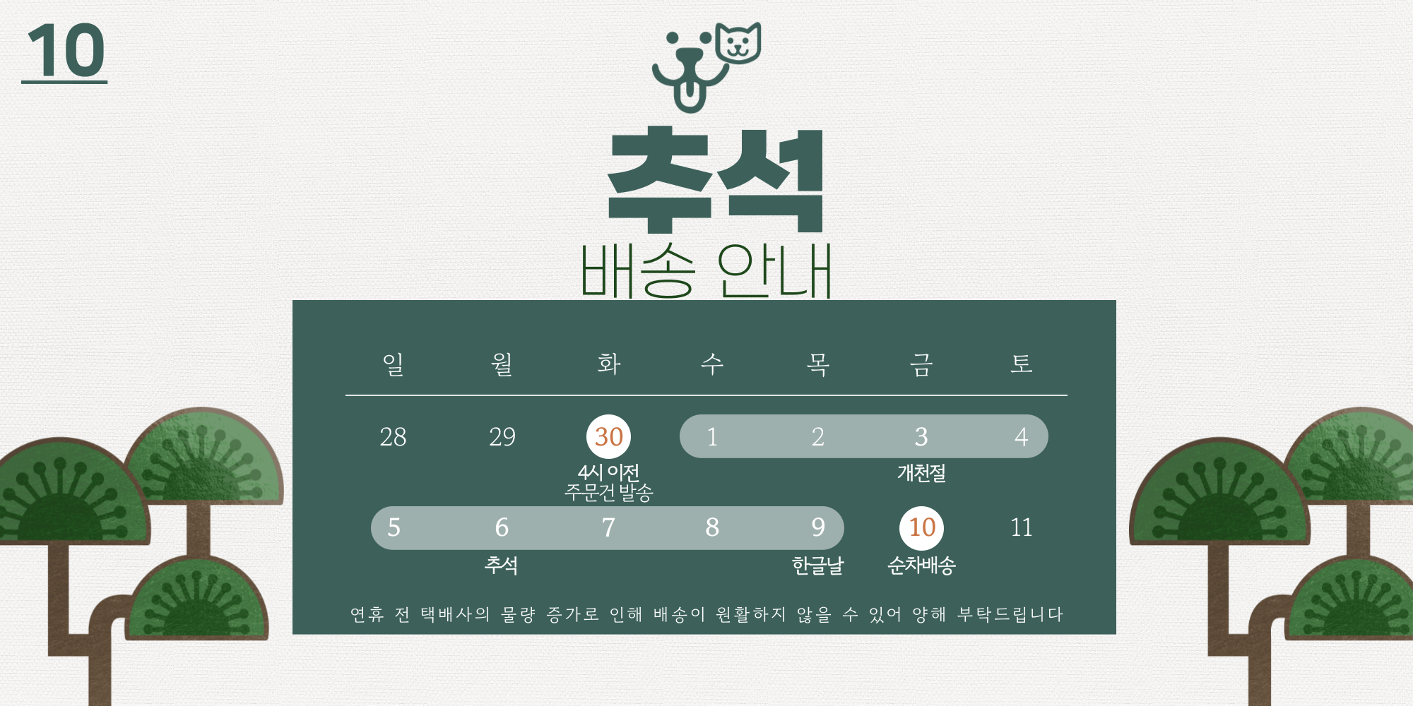 [공지] 2024년 10월 배송안내 |